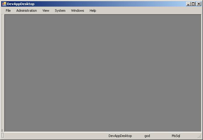 Enter the password and hit OK. Tripous creates the database if not exists and then starts the application and then displays the MainForm. The MainForm creates the ApplicationManager and then it calls its ApplicationManager.ApplicationInitialize(). Check the Tripous.Forms.SysMainForm.ApplicationInitialize() method to see the sequence. The application creates and displays the menu items in the MainForm. The application is ready now.