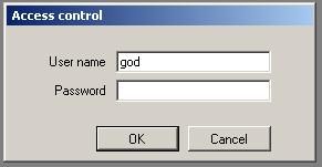 There are three predefined and hard-coded user accounts in Tripous. The highest is the account with user name god and password knows. The other two are service-trustno1 and sys-admin.